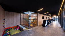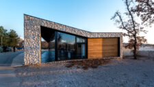 In terms of design, the new reception “emerged” from the stone paving found throughout the camp, raising it into a vertical plane and folding it into the roof surface, giving it a different dimension and perspective. The aim was to achieve the necessary prominence of the main reception building by using an unambitious material in an unexpected application.