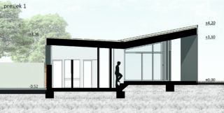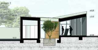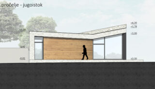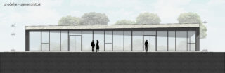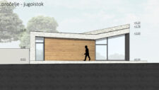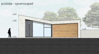 The new reception of the Njivice camp was built on the site of the old prefabricated market, which received a temporary building permit in the 1980s. The new structure had to strictly follow the form and size of the building plot and its orthogonal system. Urban planning parameters dictated 100% coverage of the plot, the possibility of building up to the edge of the plot, and the height according to the existing building.