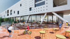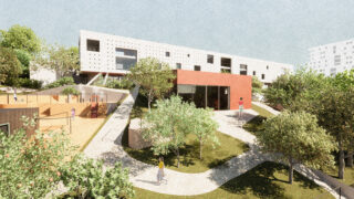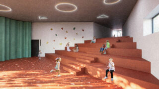 Dvorište dijele privatni korisnik, vrtić i naselje. Privatnoj obiteljskoj kući ostavljeno je dovoljno prostora, djeca imaju veliko dvorište za igru, a kao ekstenzija javnog prizemlja pruža se volumen PVN duboko unutar dvorišta, čime se stvara sadržaj koji se može u potpunosti izdvojiti i funkcionirati kao dodatni sadržaj naselja u vidu manje sportske dvorane, dvorane za priredbe, koncerte i slično. U budućnosti, ukoliko to okolnosti budu dopuštale, trenutno predviđena parcela obiteljske kuće može se prenamijeniti i postati dio sportskih sadržaja naselja.