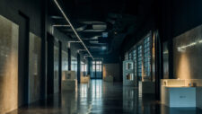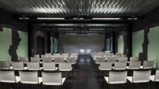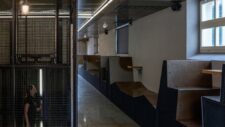Zelene neugledne kupaonske keramičke pločice, kojima su bili obloženi zidovi nekadašnjeg rudarskog kupatila, zadržavaju se u formama koje stvaraju vizualno upečatljiv ornament na crnim zidovima, diskretno podsjećajući na nekadašnju namjenu kuće.