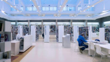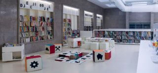 Velika Mramorna dvorana, prostor današnje knjižnice, lokacija je na kojoj su se nekada primale plaće i dizali štrajkovi, a novim se projektom nastoji afirmirati njezina prostranost, osvijetljenost i reprezentativnost. Koloristička odluka u izvedbi novog prostora respektira okruženje pa se odabirom isključivo svijetlih i bijelih polica, zidova, namještaja, opreme i poda naglašava mramor sačuvan na zidovima, materijal po kojem je dvorana dobila prvotno ime.