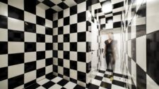 Centralni hodnik preuzima ulogu naratora. Oblikovanjem potencira dezorijentiranost i začuđenost gosta, naizgled izvrćući gravitacijske uloge stropa, poda i zida te posjetitelja uvodi u različite svjetove-sobe.