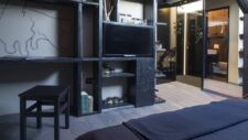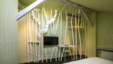 Soba tajni je istovremeno potpuno ispunjen i potpuno prazan prostor – ispunjen jakim grafizmom crno-bijelih šahovskih polja, a prazan jer na prvi dojam nema nijedan komad opreme – gost sam formira prostor, koji u konačnici rezultira potpuno opremljenom hotelskom sobom. Soba Krijesi koristi teksture apstrahiranog ognjišta, Soba Vila postiže elegičan ambijent unoseći neočekivane elemente eksterijera. Soba Drozda dekonstruira elemente krletke, u Sobi Luči nestaje granica dvodimenzionalnih i trodimenzionalnih noćnih silueta, a mistika Copernice postignuta je začudnim proporcijama.